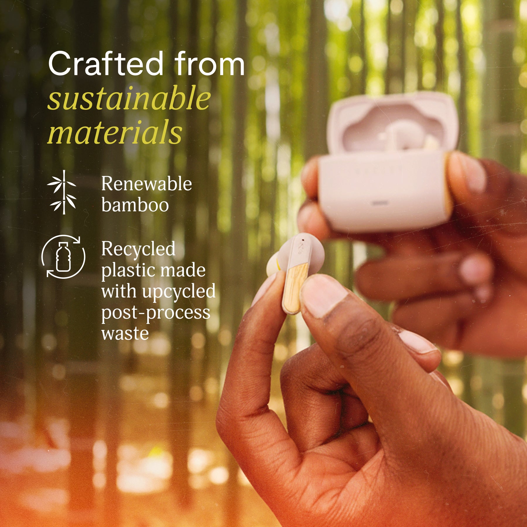 Trenchtown ANC earbuds blend timeless style with sustainable craftsmanship, using recycled plastics and natural bamboo accents for a refined finish. Every detail is designed for clarity, comfort, and conscious living. Featuring IPX5 sweat and water resistance for uncompromised performance in any conditions, and adaptive noise cancelling technology that intuitively adjusts to your environment, so you can tune out distractions and immerse yourself in the audio.