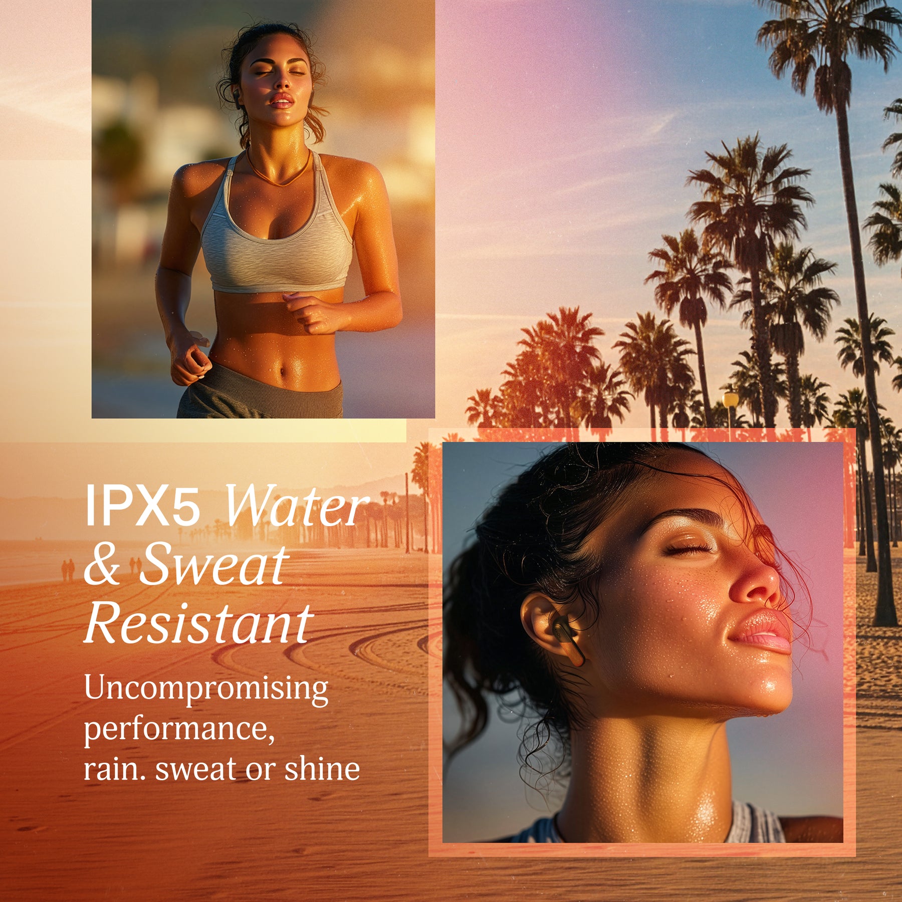 • IPX5 sweat and water resistance - Ready for your day, rain or shine.