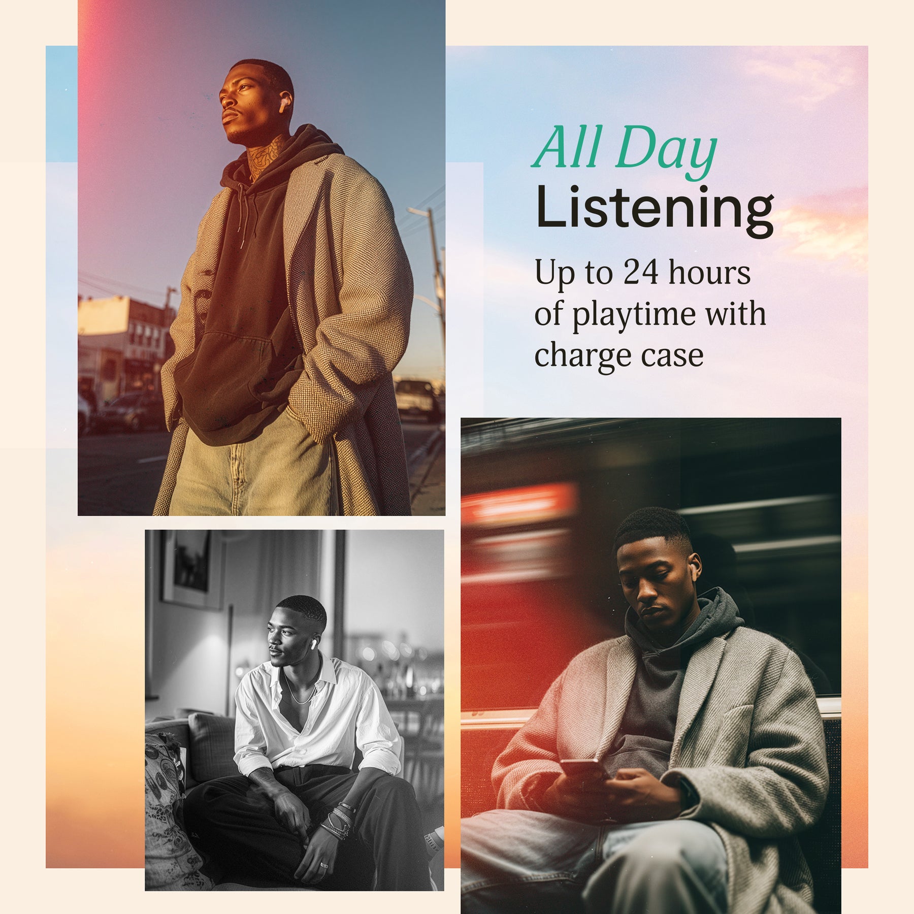 • 6 hours on buds, 24 hours with case + quick charge - All-day listening, zero stress. 6 hrs on a single charge, 24 total with the case.