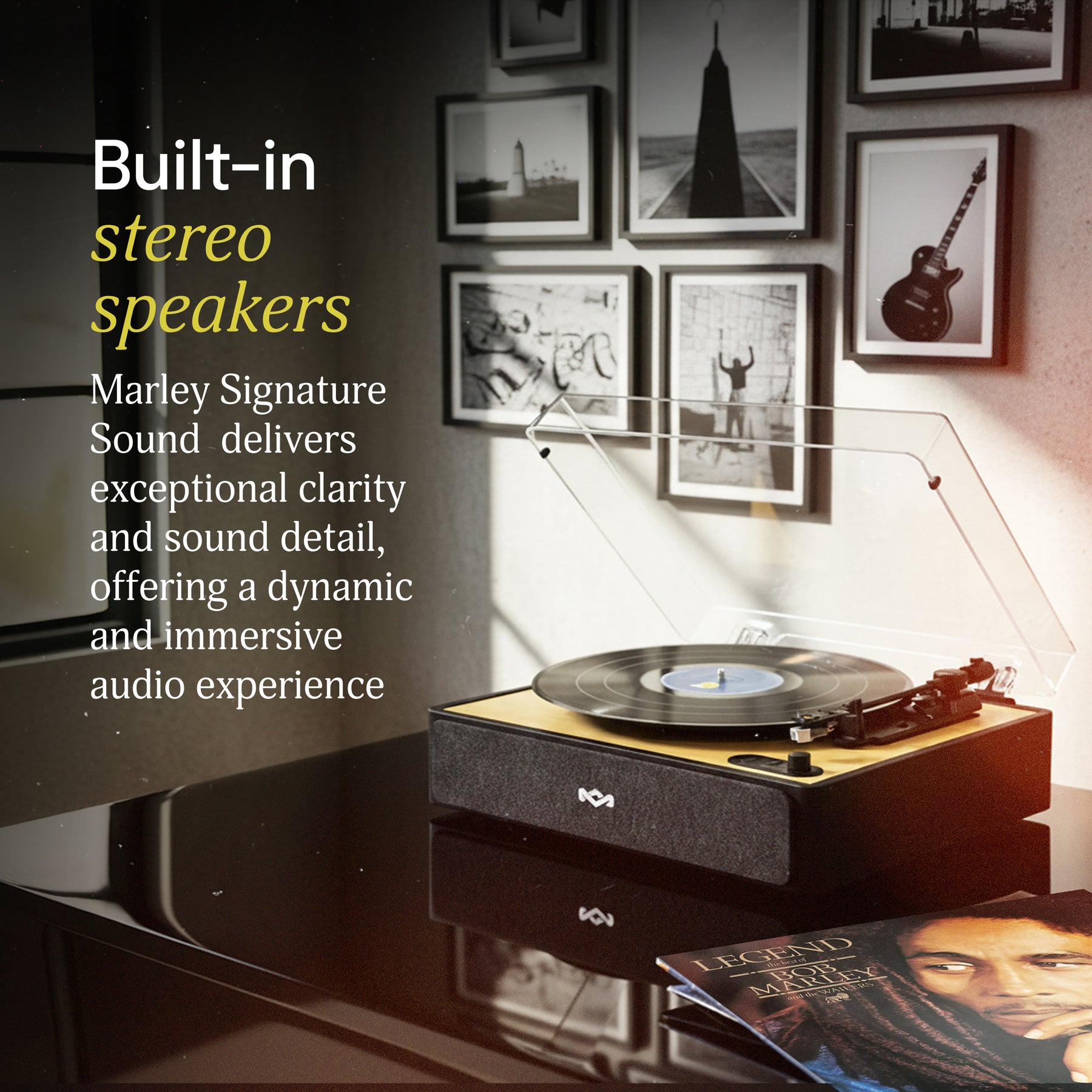 Every House of Marley product is designed to deliver an immersive audio experience that connects you to the soul of music. We pay close attention to every detail, from the use of natural materials to the precision-engineered tone-arm and cartridge that reveal the true character of your vinyl. The result? A harmonious fusion of superior audio performance, timeless style, and Earth-friendly craftsmanship.