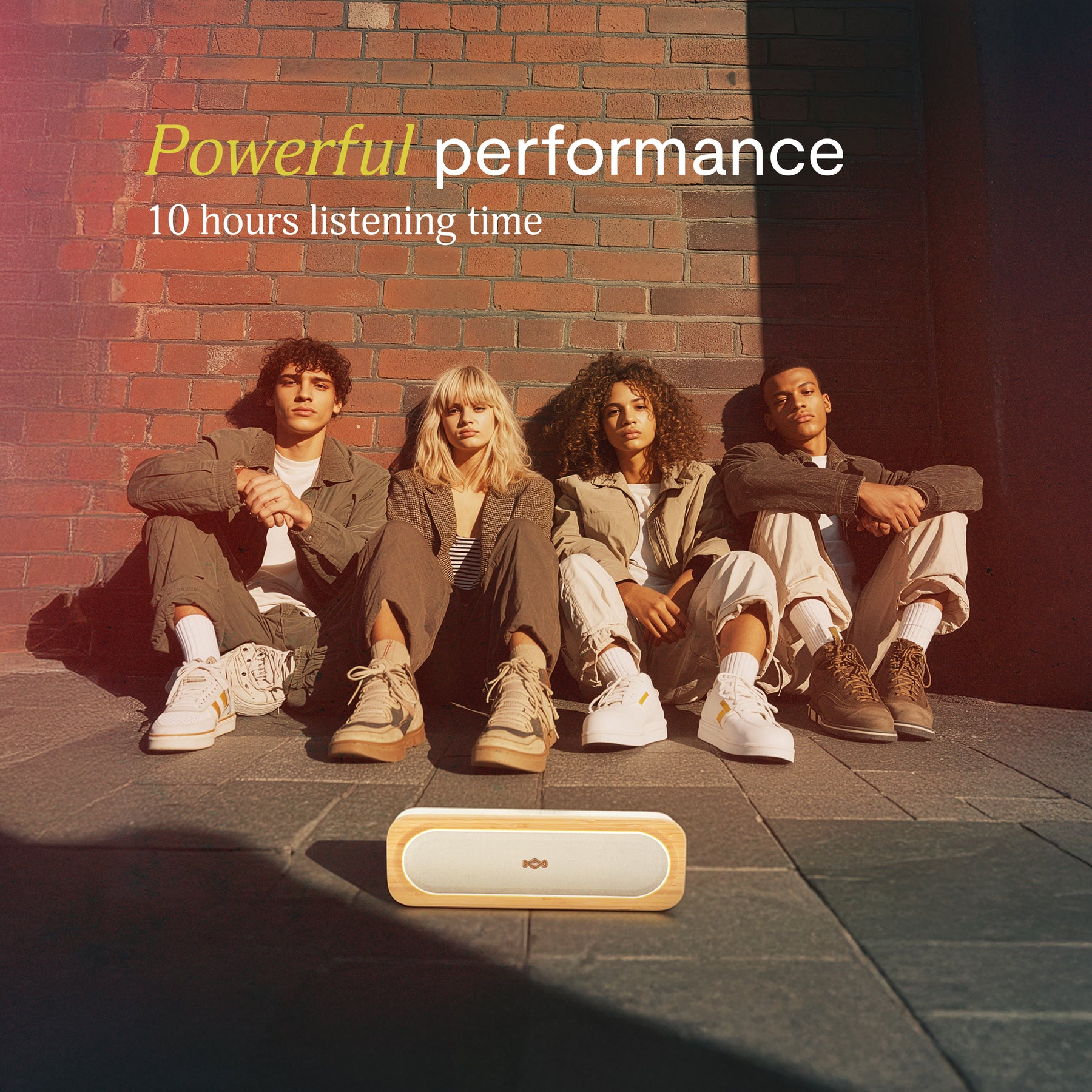 • Superior sound with 3 switchable EQ settings - Marley Signature Sound, Bass Boost, and Outdoor Mode for tailored audio clarity and depth